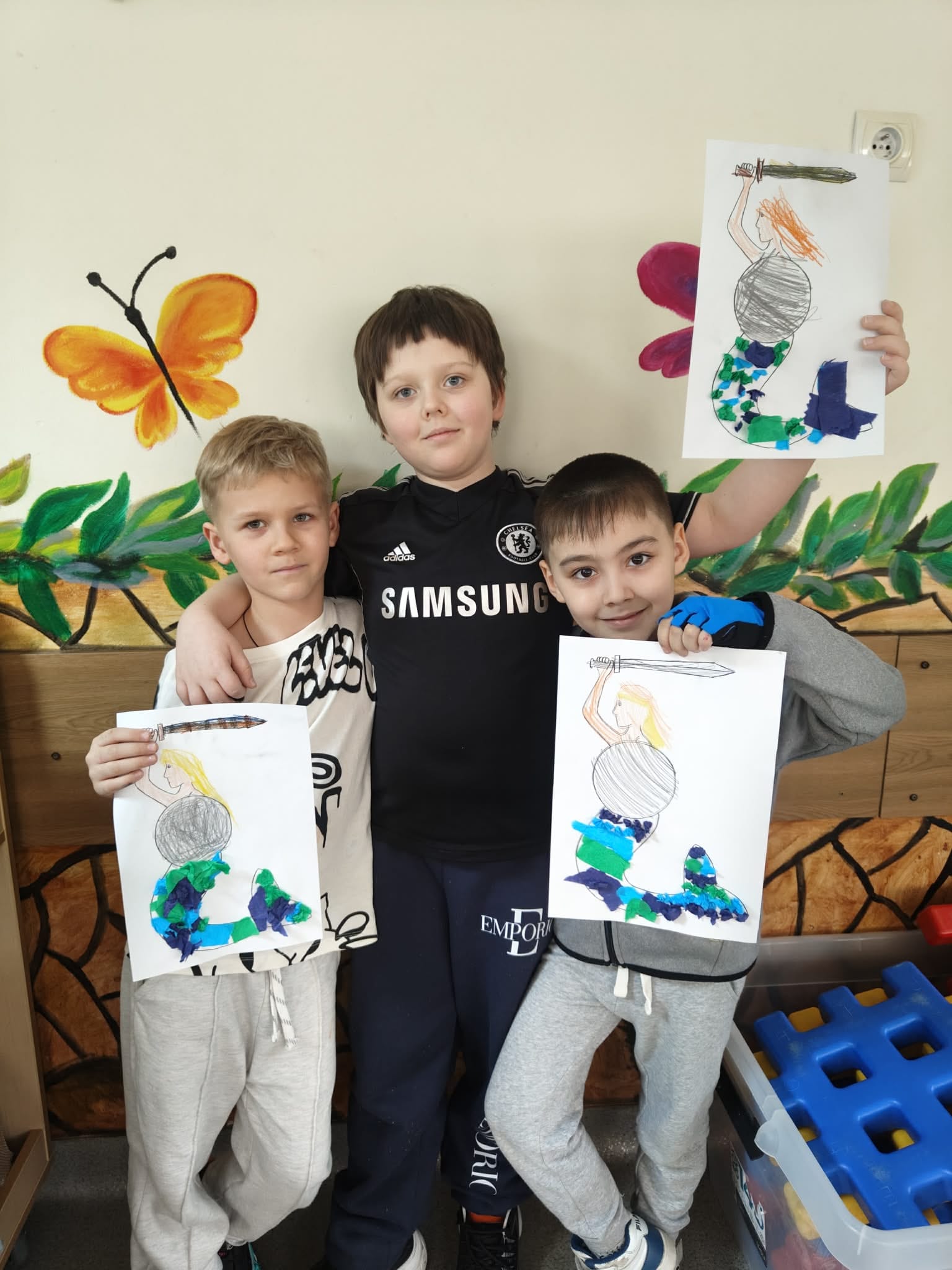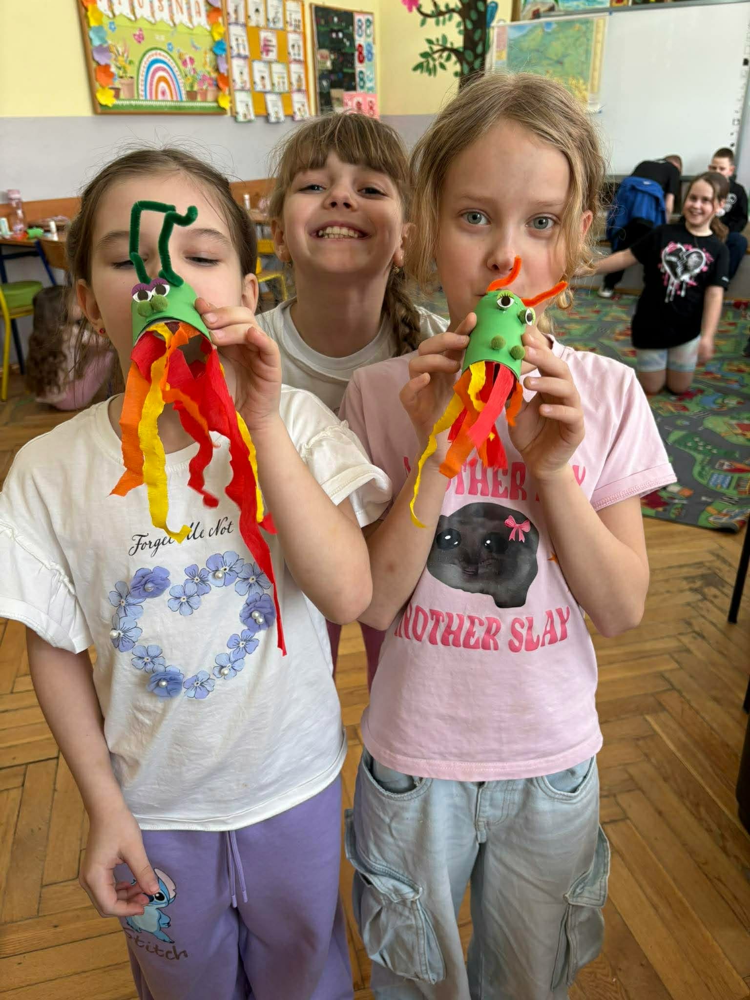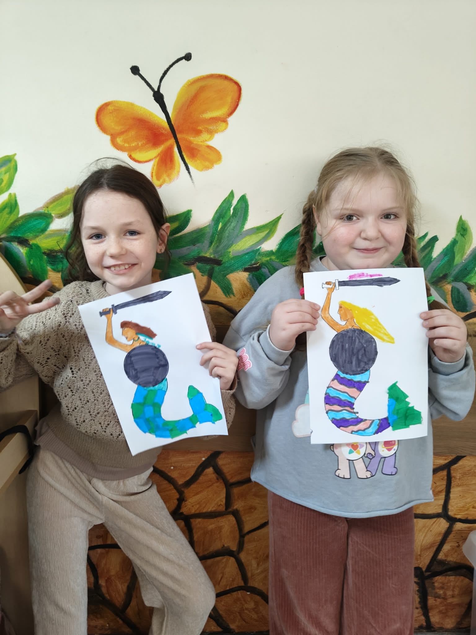 W ramach zajęć plastycznych dzieci wykonały prace inspirowane poznanymi opowieściami - powstały syrenki warszawskie, bazyliszki, złote kaczki oraz smoki wawelskie, które ozdobiły naszą salę.